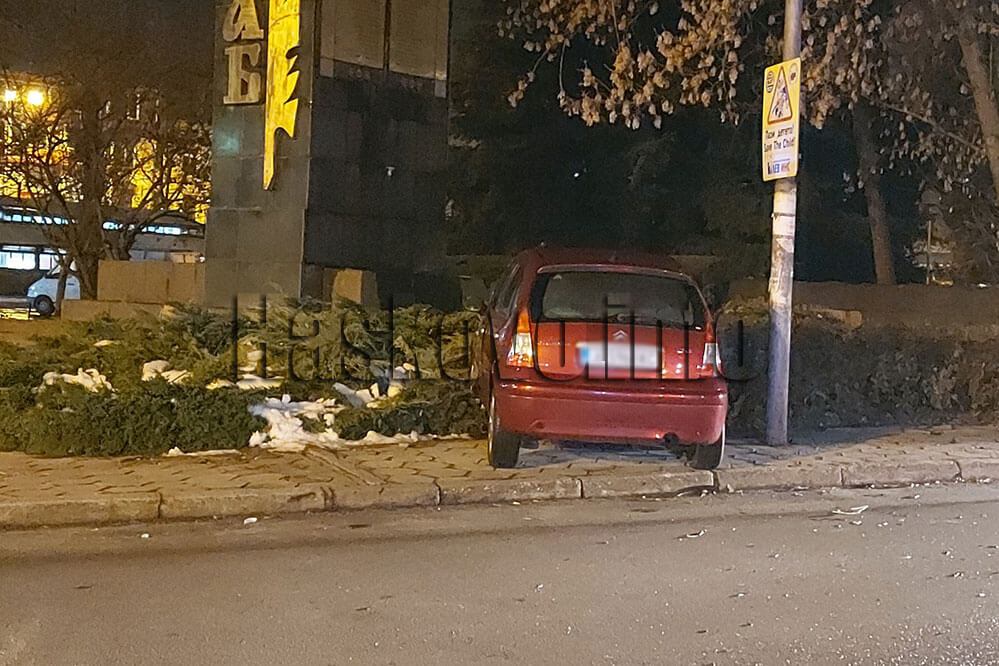 Кола се вряза в храсти на тротоар на пл. „Спартак“ в Хасково
