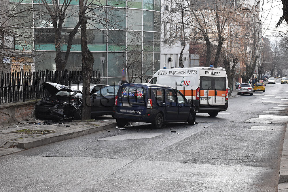 Тежка катастрофа между два леки автомобила стана преди обяд на улица „Георги Кирков“ зад сградата на НОИ в Хасково.