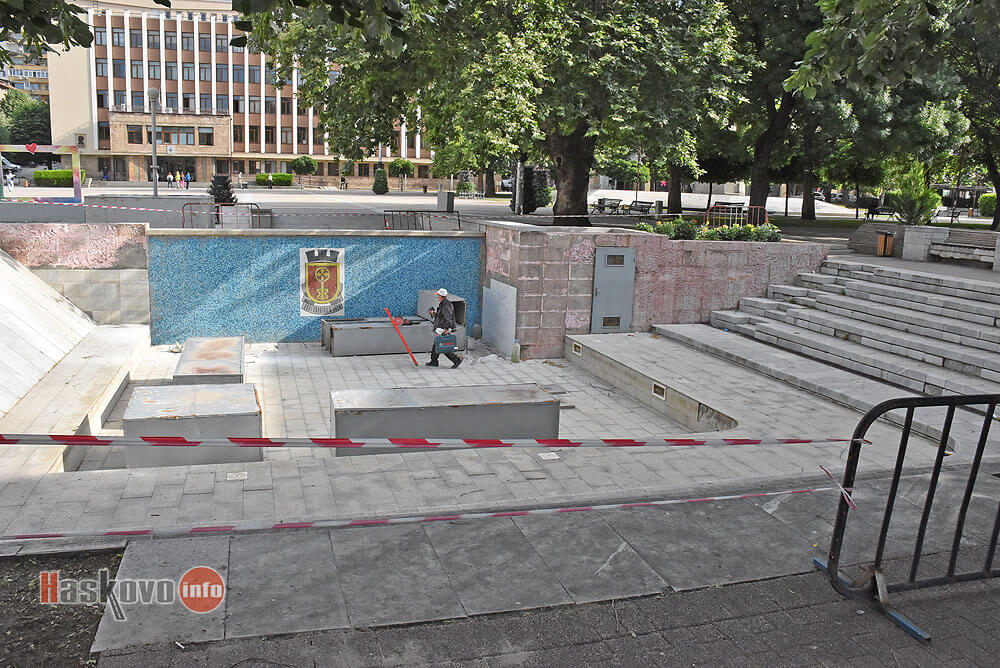 Шадраванът на площад „Свобода“ в Хасково е заграден за ремонт на повреденото покритие и след това се очаква да бъде напълнен с вода.
