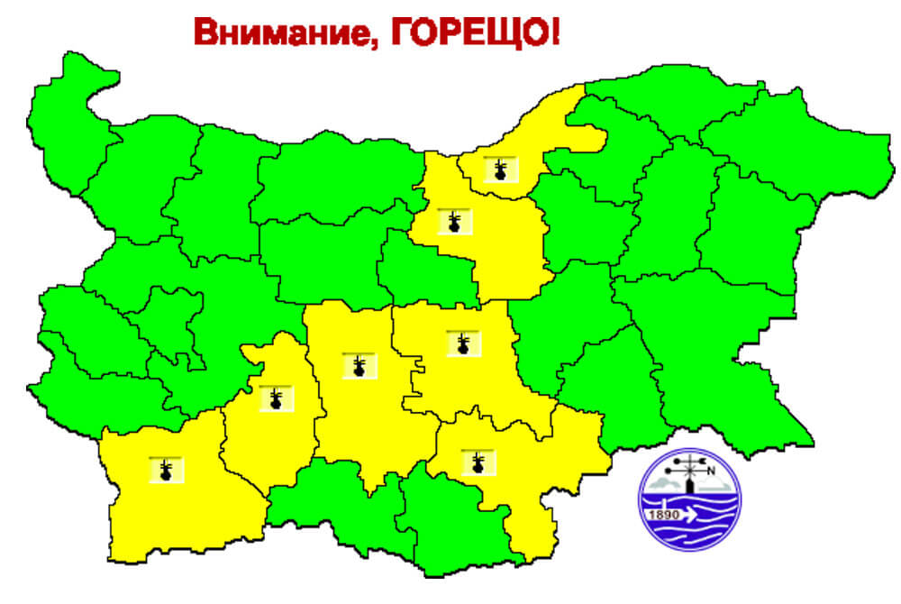 На места в равнинната част на областта температурите след обяд ще достигнат 34 – 37 градуса. Предупреждението е в сила за всички общини с изключение на Минерални бани.