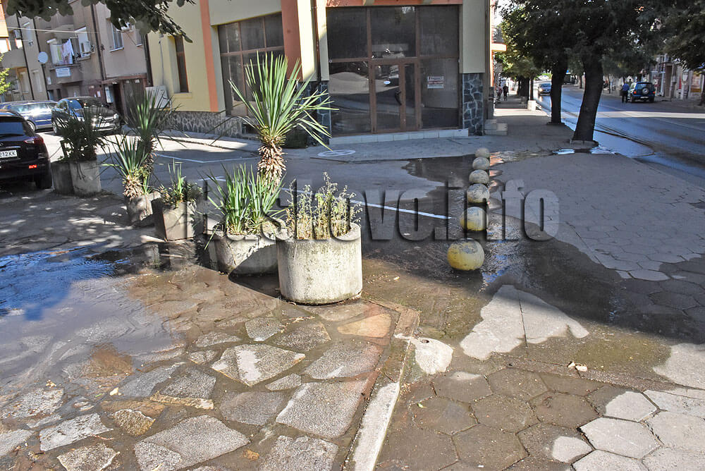 Течът стига до пиацата на таксиметровите автомобили пред Първа поликлиника.