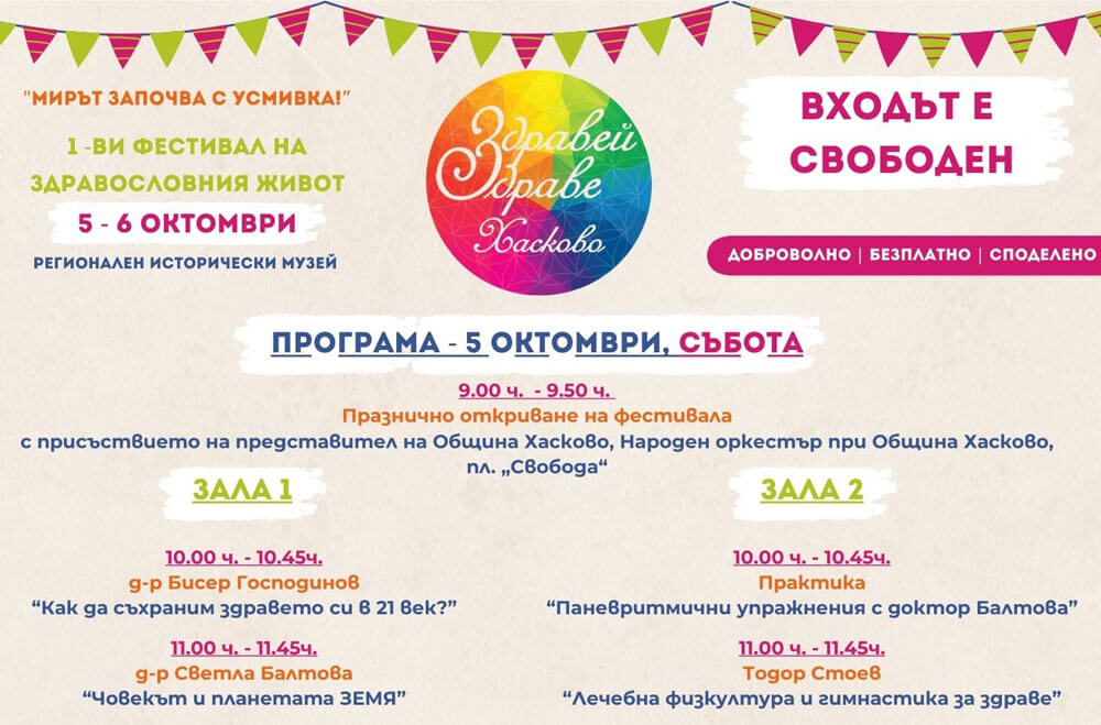 Първият фестивал на здравето – „Здравей, здраве!“ ще се проведе на 5 и 6 октомври в Хасково.