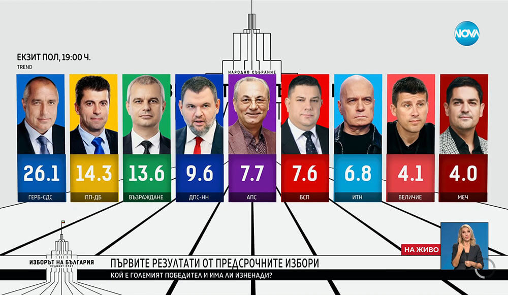 По данни на двете агенции, с които работи Нова телевизия – Тренд и Галъп резултатите са следните: