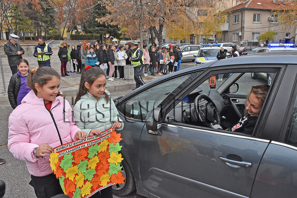 Инициативата „Послания на есенния лист“ се провежда вече 13 години. Колите се спираха от 10 до 12 часа на площад „Спартак“. Началникът на Пътна полиция Димо Чобанов се ангажира за съдействието на децата в кампанията.