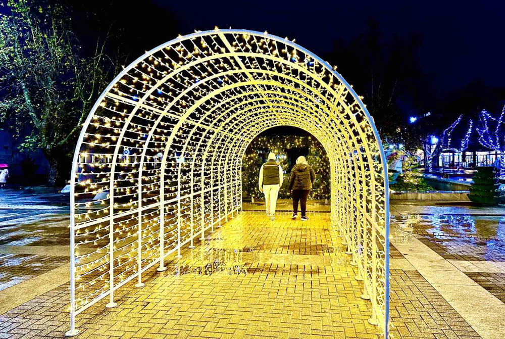 За първи път в Хасково засия коледната инсталация „Звезден тунел“. Този тип съоръжения набират все по-голяма голяма популярност.