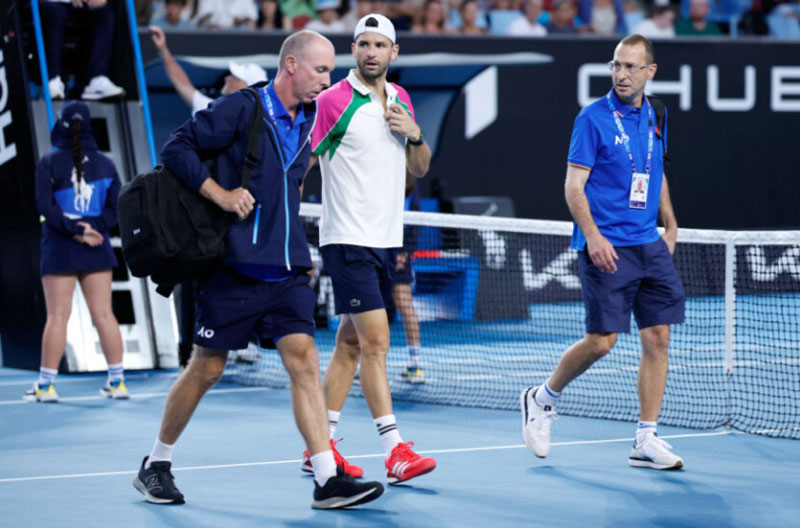 Контузия прекрати участието на Григор Димитров още в първия мач на откритото първенство на Австралия по тенис, съобщават от федерацията.