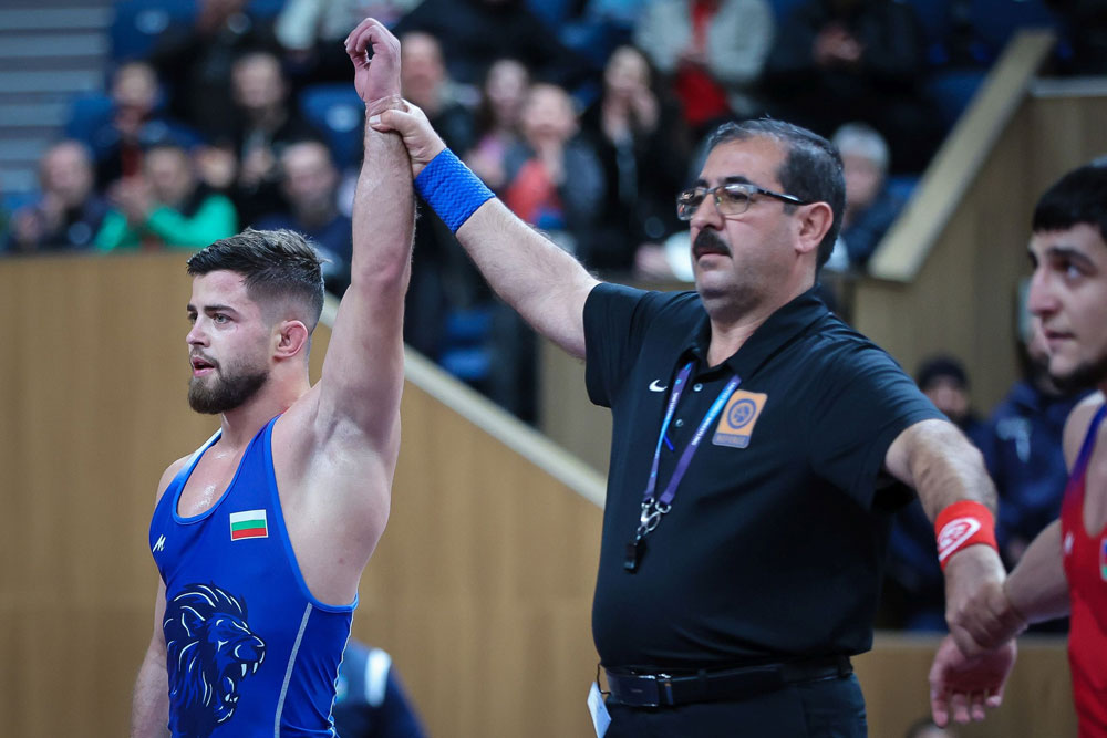 Той победи азера Мурад Хагвердиев в оспорвана финална схватка. Европейският вицешампион се наложи с 2:2 и предимство на последен отбелязал. До последната минута резултатът бе 2:2, когато съперникът му атакува, арбитрите му дадоха 2 точки, но след обжалване от нашия щаб, резултатът остана 2:2 за българския борец.