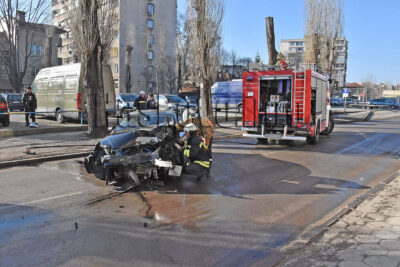 На място пристигна екип на пожарната, който успя да изкара шофьора от смачканата кола. Младежът е откаран в Спешно отделение на болницата.