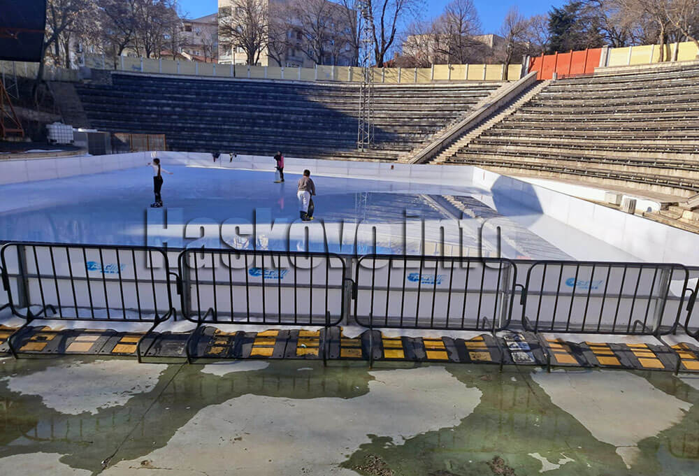 Заради високите температури ледът на пързалката на пл. „Спартак“ се топи, но въпреки това не липсват желаещи да я ползват.