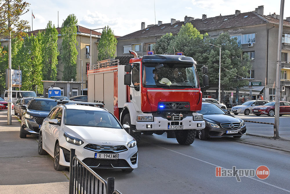 Пожарна си проби път тази вечер в час пик на път за сигнал за скъсани кабели в хасковския парк „Кенана“.