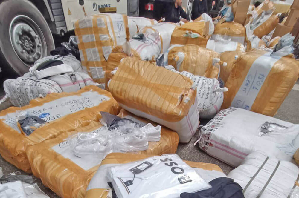 Камионът е селектиран за щателна митническа проверка, при която сред декларираната стока са открити 23 431 текстилни изделия – по-голяма част от тях тениски, спортни и детски комплекти, спортни долнища, чорапи и шапки с обозначенията на световноизвестни марки.