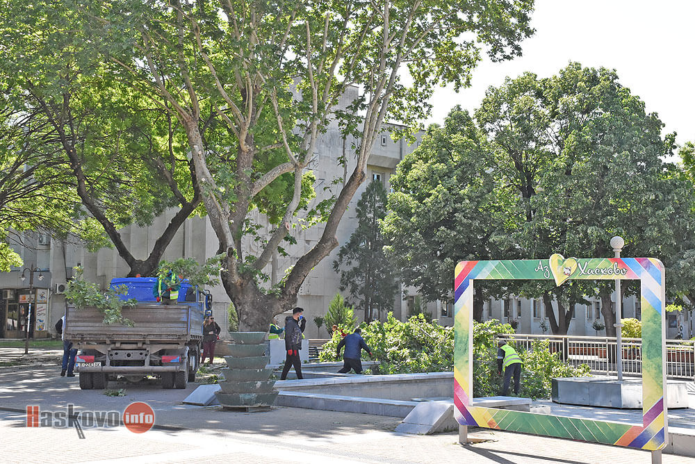 Санитарна сеч извършиха преди обяд работници от "Екопрогрес" в центъра на Хасково.