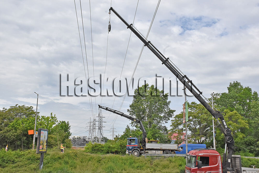Както Haskovo.info писа, заради дейностите по изтеглянето на жиците за кратко се налага спирането на движението при входа на Хасково откъм Димитровград. Идеята е да се избегне опасността при евентуално падане на електропровода той да удари преминаващ автомобил.