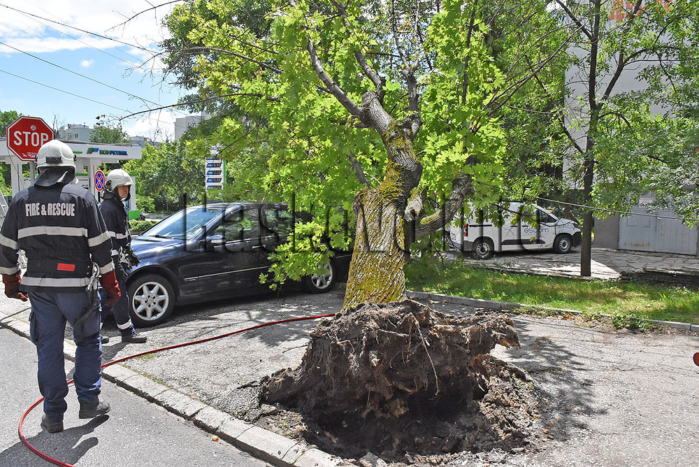 Пожарникарите изчакаха да бъде спряно електричеството между стълбовете и повдигнаха дървото, за да може собственичката да изкара колата си. След това дървото беше нарязано. Дотогава пресечката беше затворена за движение.