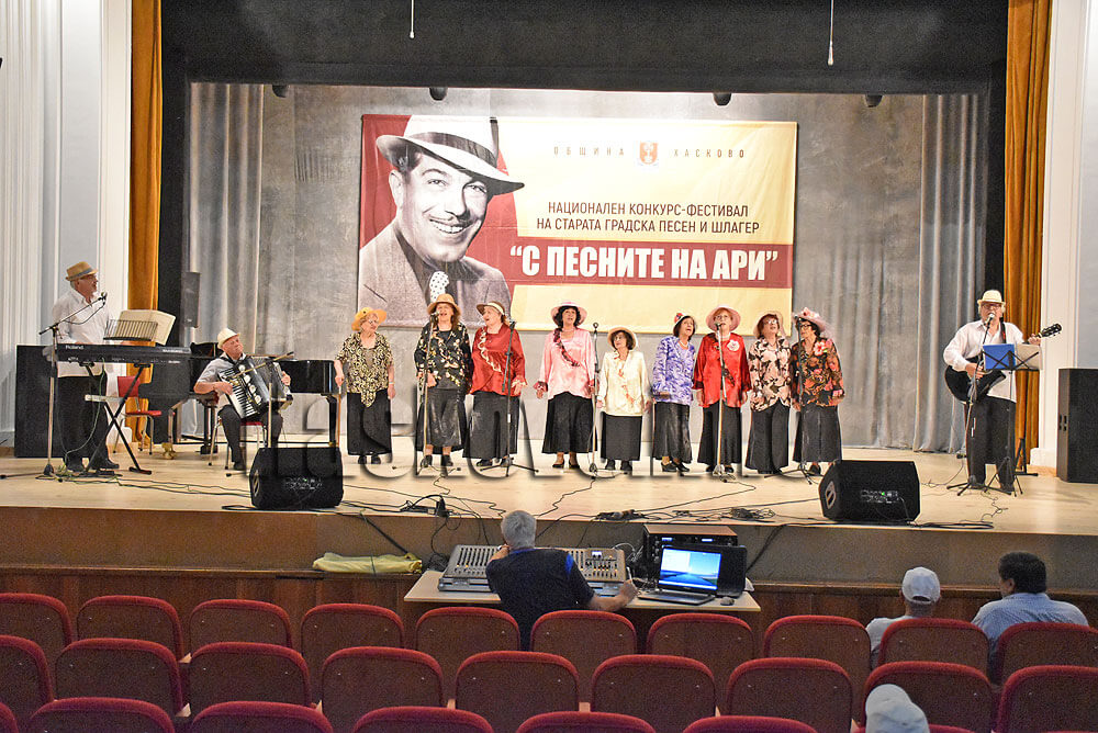 Вокална група „Нежни думи“ с ръководител Росен Димов при читалище „Заря“ откри преди обяд 24-то издание на Националния конкурс-фестивал на старата градска песен и шлагер „С песните на Ари“ в Хасково.