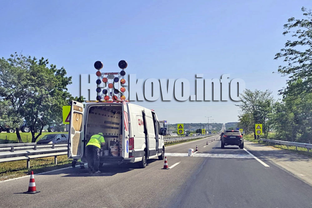 Довършват маркировката при кръговото на пътя Хасково – Димитровград