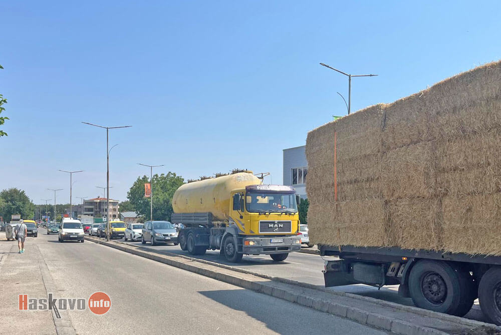 Тежкотоварен автомобил със слама спука гума преди обяд на булевард „Освобождение“ в Хасково и предизвика големи задръствания, сигнализираха читатели на Haskovo.info.