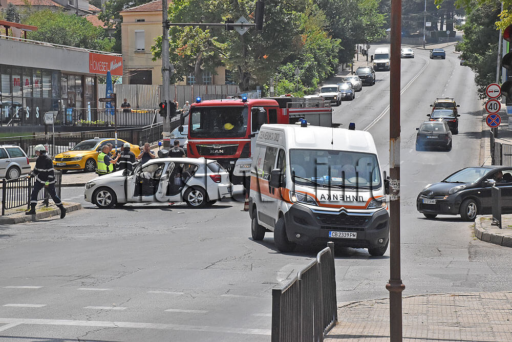 Пожарна и лека кола се сблъскаха на оживено кръстовище в Хасково