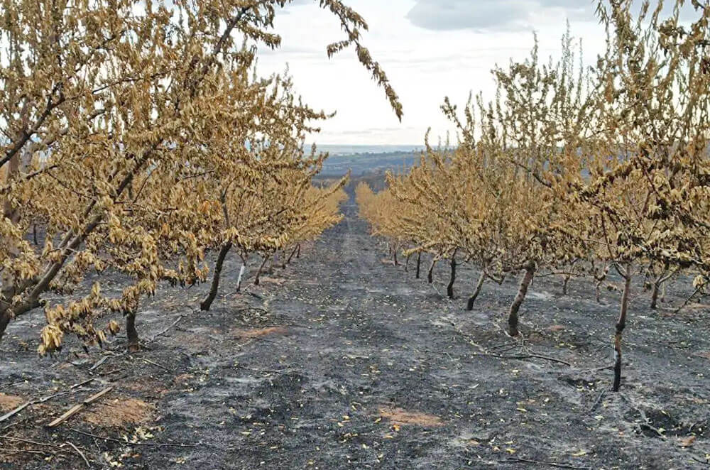 На 27 юли стихията опожари повече от една трета от бадемовите дървета на Явор Илиев в свиленградското село Студена. Около 2 400 дървета с плодове, оцелели след екстремно ниските температури през пролетта, не бяха пощадени от огнената стихия. Това е огромно изпитание за производителите на био бадеми още повече, че късните студове през април унищожиха повече от 80% от продукцията.