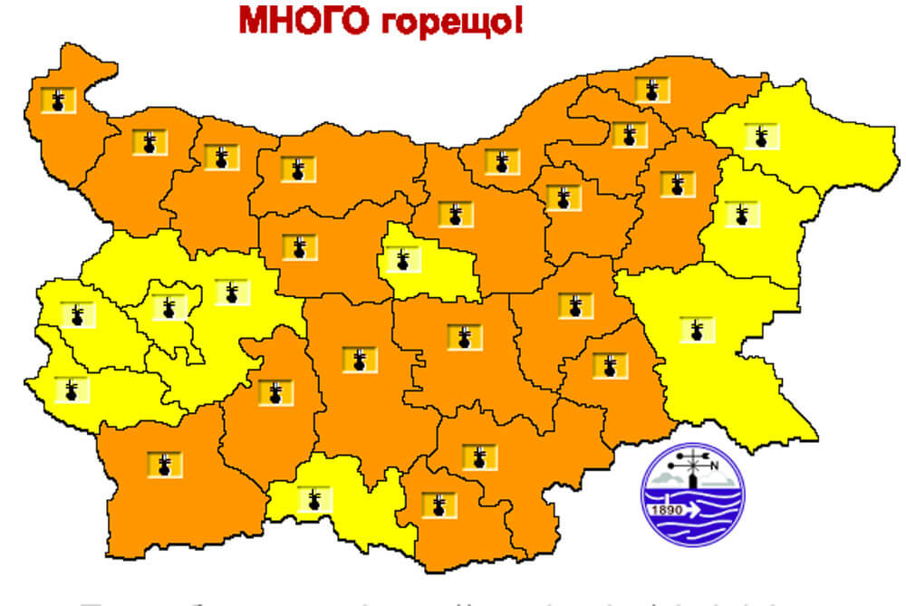 Времето ще е много горещо с максимални температури между 38 и 41 градуса. До края на седмицата ще е слънчево, а градусите ще са около 35.