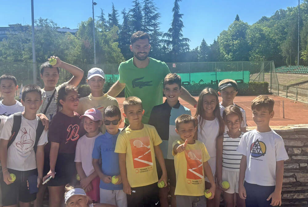 Той използва времето докато е у дома да посети кортовете на „Кенана“ и да зарадва трениращите там деца. Снимки от срещата бяха качени в социалните мрежи.