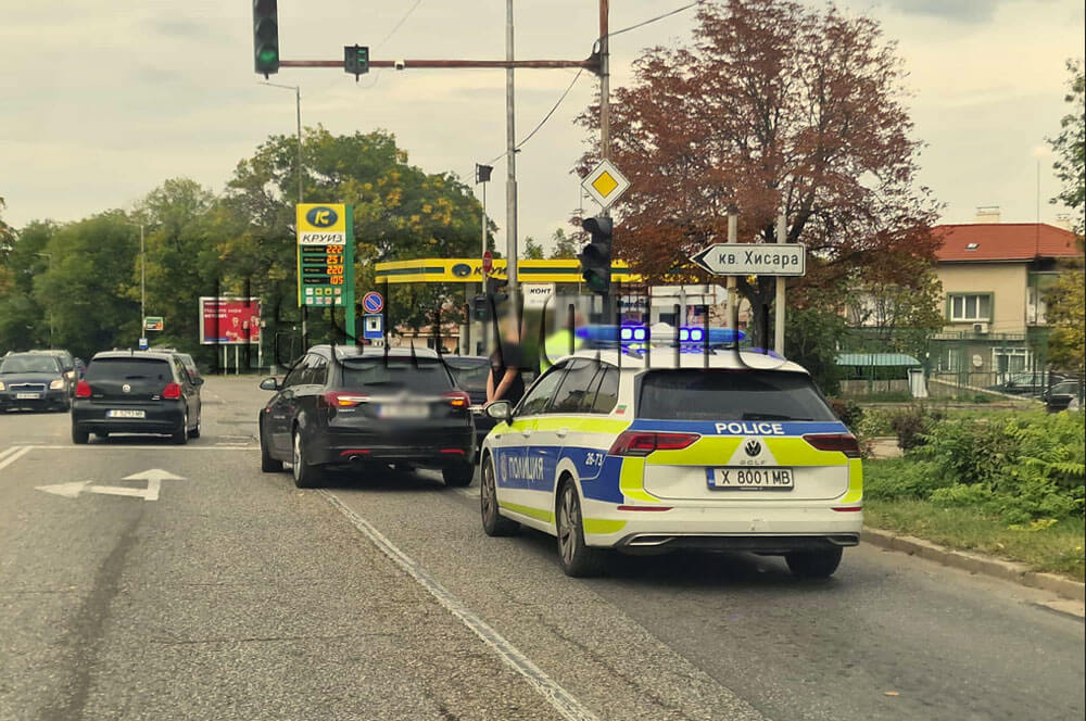 На светофара на булевард „Освобождение“ до сградата на Областната дирекция по безопасност на храните се удариха два леки автомобила, движещи се един зад друг.