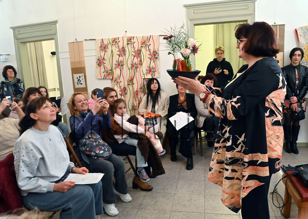 Валентина Герова, председател на сдружение “Сога“ за популяризиране на източна култура, и лицензиран преподавател по икебана, подчерта, че това древно изкуство е средство за постигане на хармония и добро настроение в дома. Икебаната е форма на медитация, може само с едно клонче или цвете да се направи хубава композиция.