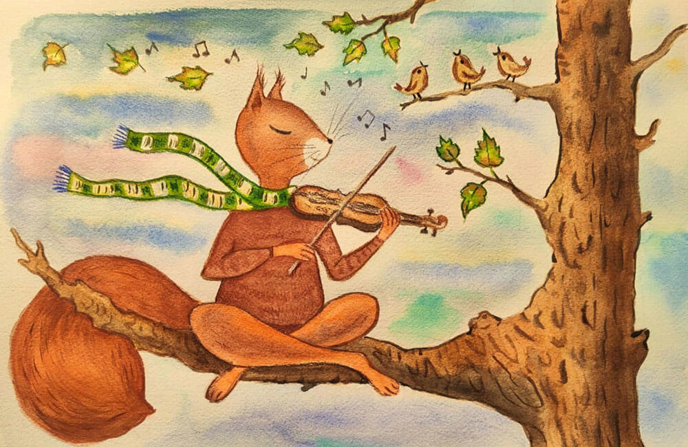 „От много време работя с деца и покрай тях надникнах в детския свят. Рисуваме животни и пейзажи. Наблюдавайки есента ми хрумна идеята да направя серия от истории с катерица, която обича да чете, да спи, да свири на цигулка“, разказа пред Haskovo.info Русев.