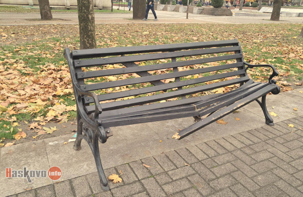 Вандали строшиха пейка до паметника на Незнайния воин в центъра на Хасково.