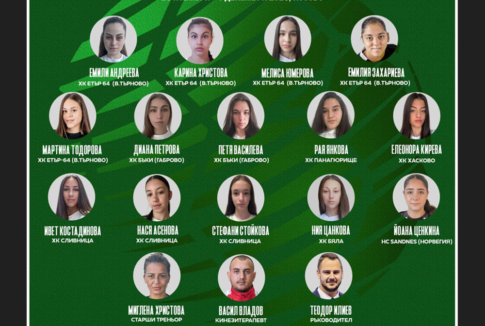 Националките се събират на подготвителен лагер утре. Те ще тренират няколко дни заедно преди заминаването на 17-годишните за Косово. Треньор е Миглена Христова.