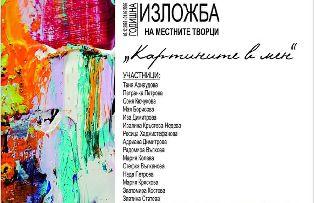 Под наслова „Картините в мен“ 15 художници показват своите творби. Откриването на експозицията е на 3 декември от 18 ч.