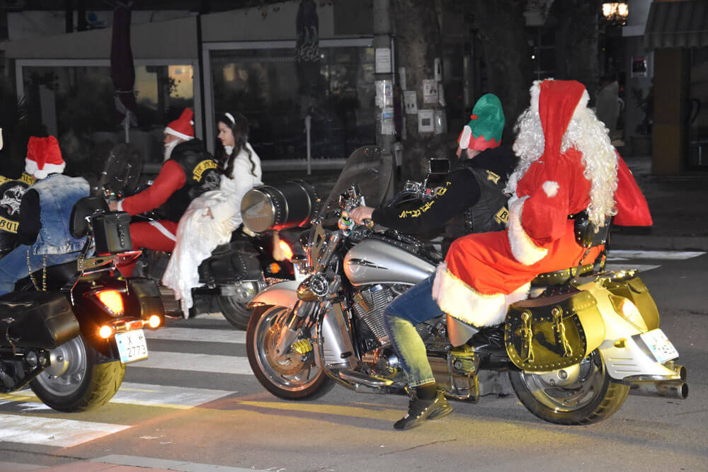 Дядо Коледа и Снежанка пристигнаха снощи в Харманли на мотори за запалване на светлините на елхата.