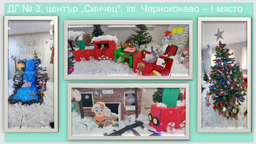 В конкурса, който се провежда за четиринадесета поредна година, взеха участие 25 училища, детски градини и социални центрове, предоставящи социални услуги на деца и младежи. Основната цел е да се поощри естетическото изпълнение на кът с тематична коледна украса, което да създава коледно настроение и да радва, ползващите сградата и посетителите през целия период на празниците.
