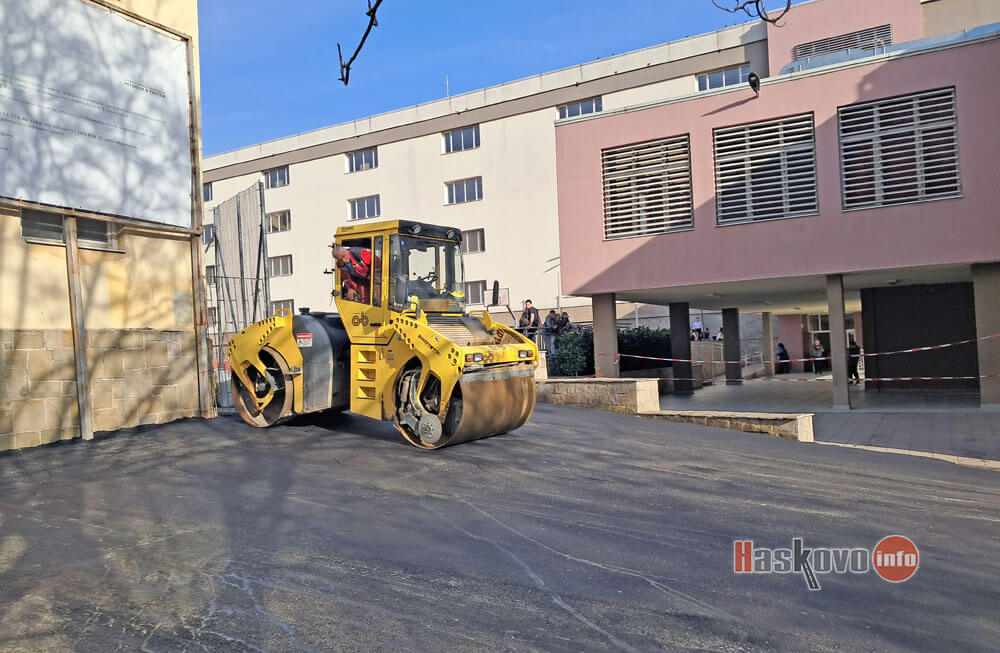 Поставиха нова асфалтова настилка при портала на ОУ "Св. Иван Рилски" в Хасково.