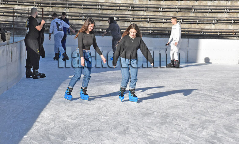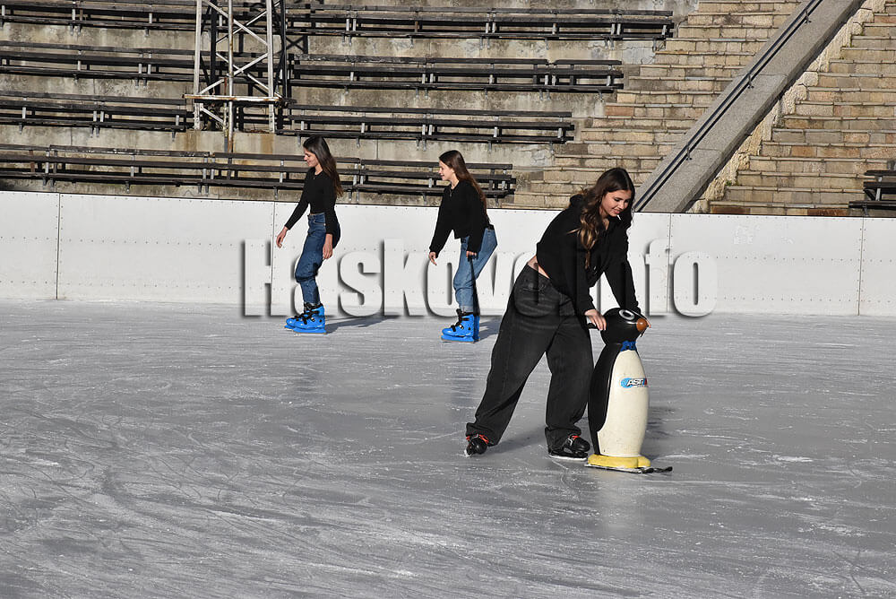 Първите деца и младежи вече се забавляват на ледената пързалка на площадка „Спартак“ в Хасково.