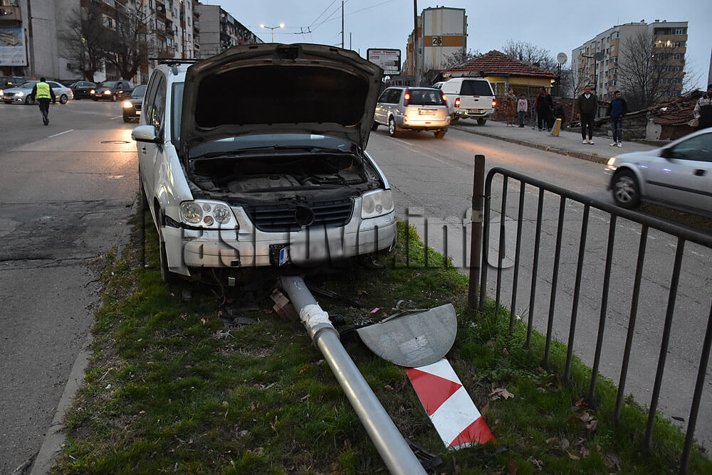 Инцидентът стана в час пик на булевард „Васил Левски“. Колата се е движила от квартал „Орфей“ в посока бившата Цигарена фабрика и малко преди кръстовището с улица „Единство“ се е ударила в стълба.