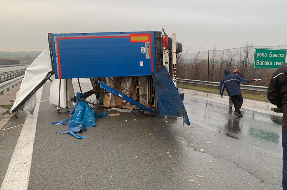 Обърнат тир затвори магистрала „Марица“ край Хасково