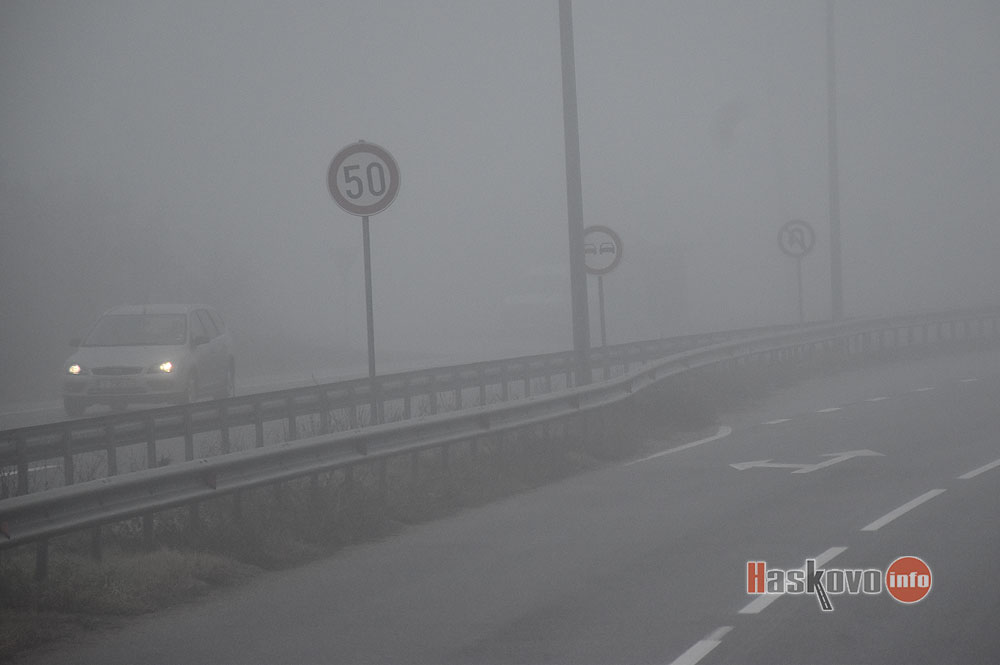 Гъста мъгла падна преди обяд на места в Хасковска област. Шофьорите трябва да карат внимателно.
