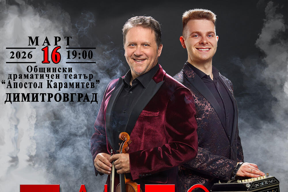 Плевенска филхармония с виртуозните инструменталисти Веско Ешкенази (цигулка) и Стоян Караиванов (бандонеон) ще изнесат концерта „Танго classic“ на 16 март от 19 часа в театър „Апостол Карамитев“ в Димитровград, съобщават от общината.
