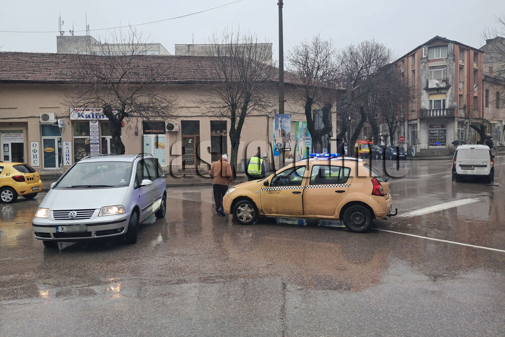 Таксиметров автомобил и друга лека кола се сблъскаха тази сутрин в дъжда в центъра на Хасково.