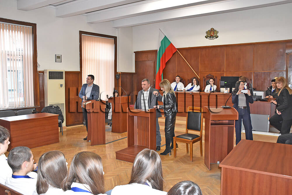 Председателят на районния съд Пламен Георгиев и заместник-районният прокурор Антон Иванов запознаха учениците с проблемите на детското насилие, хулиганските прояви, наказателната отговорност на непълнолетните и възпитателните мерки спрямо деца.