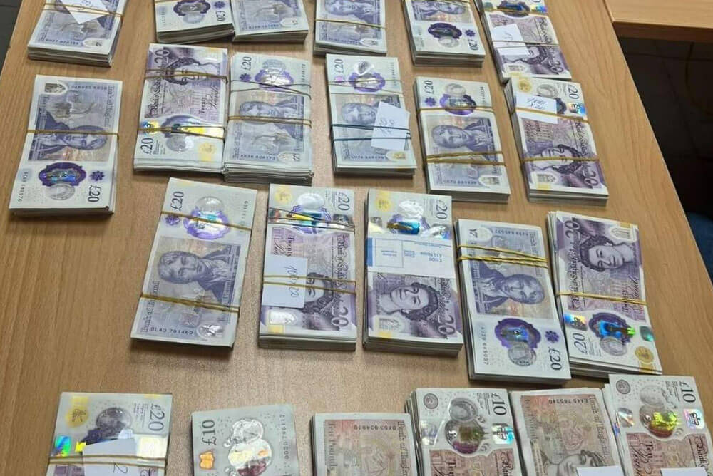 Британските лири са открити при митническа проверка на влекач с полуремарке. Турският шофьор представил документи, че превозва дизелови помпи от Великобритания за Турция.