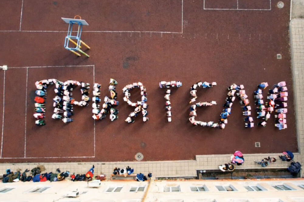 От ОУ „Св. Климент Охридски“ благодарят на всички, които се включиха в изложбата „Училище на усмивките“. С телата си децата изписаха думата „Приятели“ и чрез ритмично и силно повтаряне усетихме силата й.