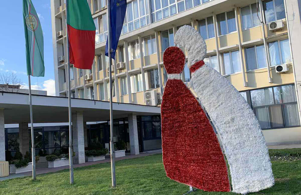 Пред сградата на общината и тази година е поставена три метрова стилизирана светеща мартеница.