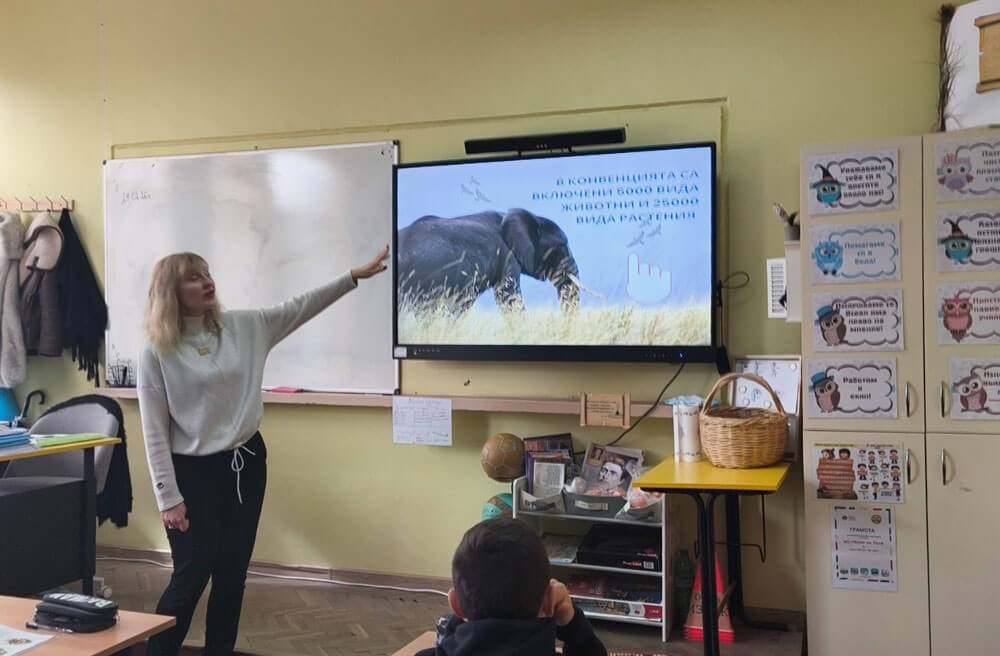 Експерт от еко инспекцията посети учениците и ги запозна с Конвенцията за международна търговия със застрашени видове от дивата флора и фауна, със сериозните заплахи за дивата природа – загубата и промяната на местообитанията, свръх експлоатацията, незаконния трафик.