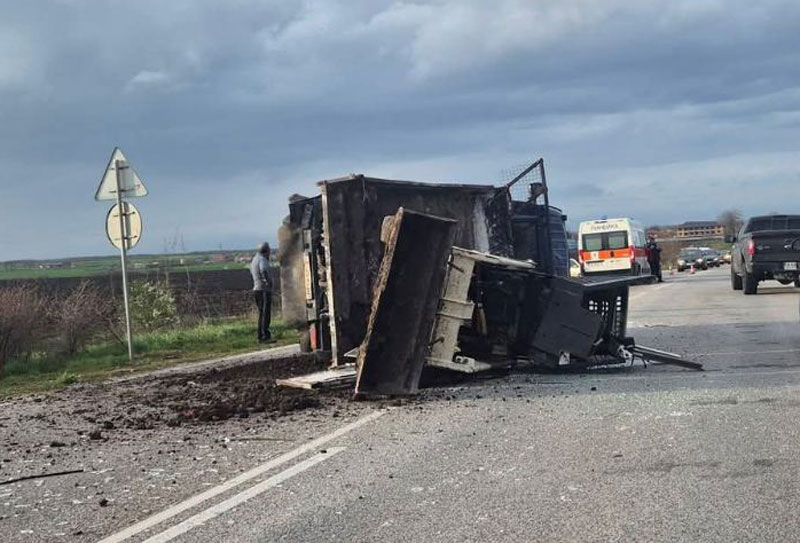 Товарната кола се е движила в посока Димитровград, застигната е от лека кола и при маневра за изпреварване е ударена отзад.