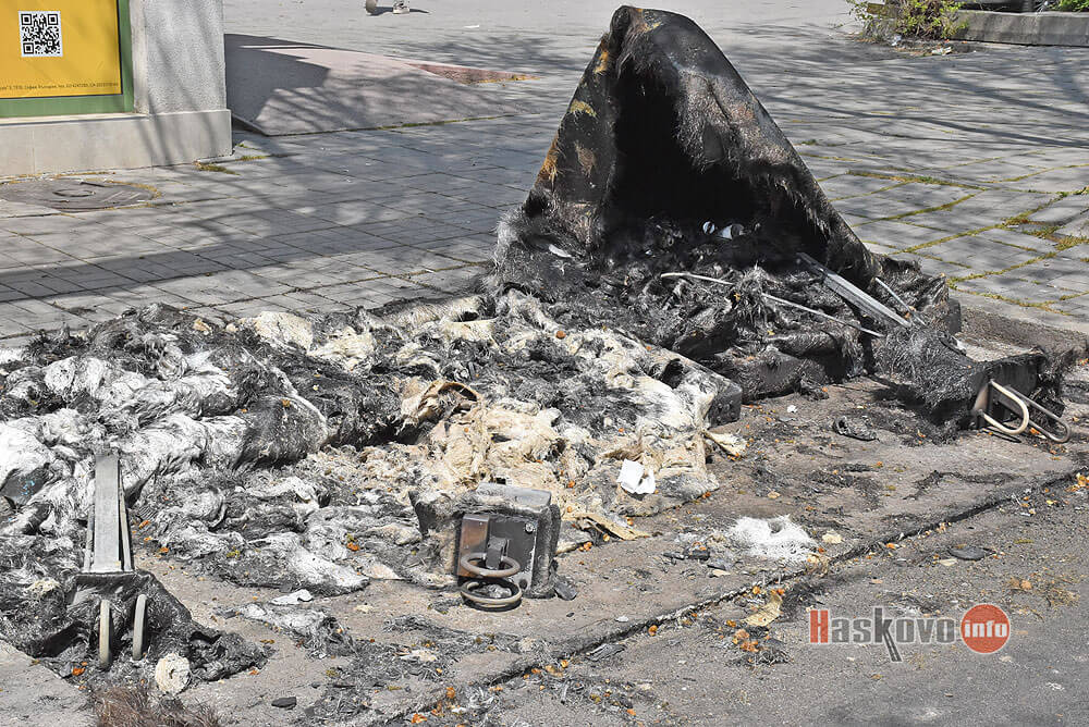 Пластмасови контейнери за отпадъци са изгорели до централния вход на МБАЛ – Хасково.