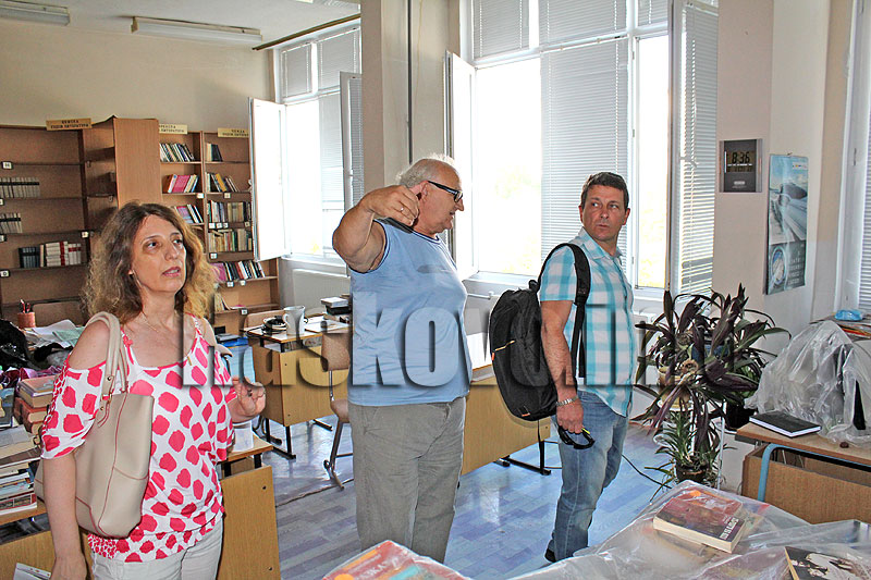 Той бе посрещнат от временно изпълняващия длъжността директор Гергана Гочева, която го съпроводи до третия етаж, където е дирекцията, а в съседство се извършва ремонт на библиотеката. Преди да влезе в кабинета си Янев огледа как върви ремонта. Гочева обясни, че той е за около 4700 лв. и библиотеката се преустройва в класна стая, като работата трябва да приключи до десетина дни.