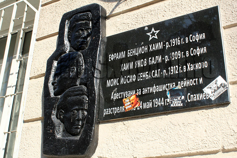 Барелефът е на жилищен блок на бул. “България” 55 и е в памет на Ефраим Бенцион Хаим, Хаим Яков Бали и Моис Йосиф Бенбасат, арестувани за антифашистка дейност и разстреляни на 24 май 1944 г. край с. Спахиево.