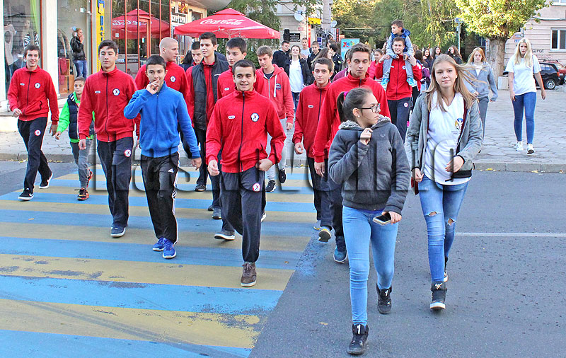 Десетки деца и младежи се събраха на площад „Свобода“ и заедно стигнаха до спортна зала „Дружба“.